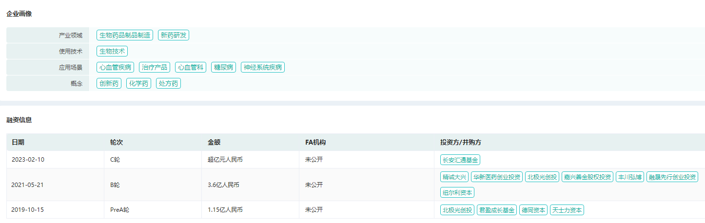 2021年5月,完成3.6亿元B轮融资,领投方为纽尔利资本,苏州融晟先行创业投资合伙企业、丰川弘博投资管理合伙企业(有限合伙)、嘉兴善金股权投资合伙企业(有限合伙)跟投。北极光创投、天士力资本华新基金、西安精诚大兴企业管理合伙企业(有限合伙)追加投资。