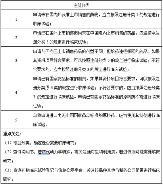 三、注册分类、参比制剂及是否需要临床研究