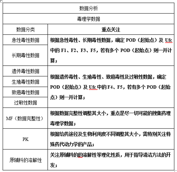 在药品研发前期,要充分收集产品毒理学的相关数据,如急性毒性试验、长期毒性试验、遗传毒性试验、生殖毒性试验、致癌毒性试验、过敏性试验等的相关研究数据,用于计算基于健康的暴露限度(HBEL)。