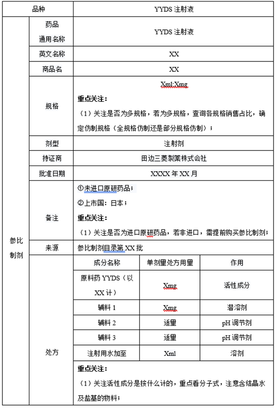 查询YYDS注射液(XXml:XXmg)及(Xml:Xmg)国内外研发历史,是为了了解该品种的研发上市历史沿革,重点关注原研制剂出现停产、退市等情况,一定要深究其根本原因,避免因为原研制剂由于质量原因导致的停产、退市使自身的仿制进度中断,这样可以提前避免这种风险的出现。