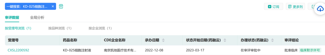 截图来源:药融云中国药品审评数据库