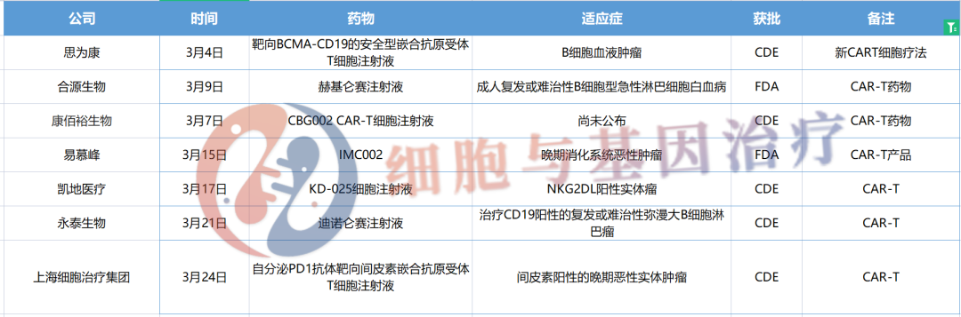 3月IND申请获受理的CAR-T细胞疗法盘点