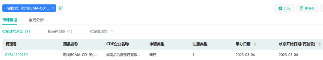 3月4日,据药融云中国药品审评数据库显示,湖南思为康医药有限公司自主研发的“靶向BCMA-CD19的安全型嵌合抗原受体T细胞注射液”临床试验申请获得受理(受理号:CXSL2300169)。