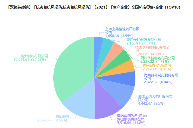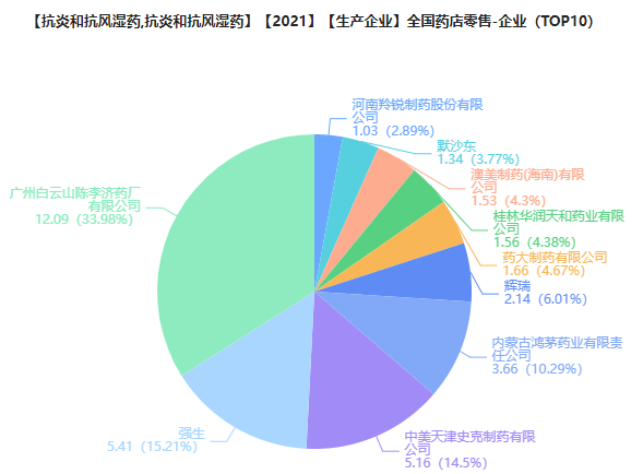 2021年零售药店抗炎和抗风湿药生产企业竞争格局