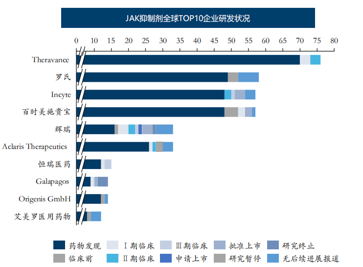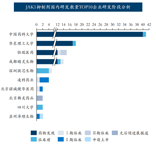 三、JAK抑制剂总体研发热度较高,国内企业恒瑞医药进度最快