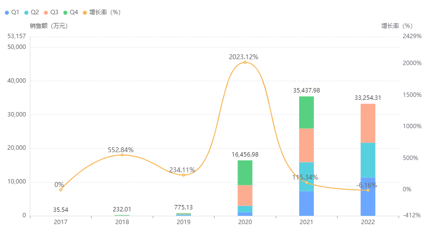 芦可替尼全国医院端销售年度趋势