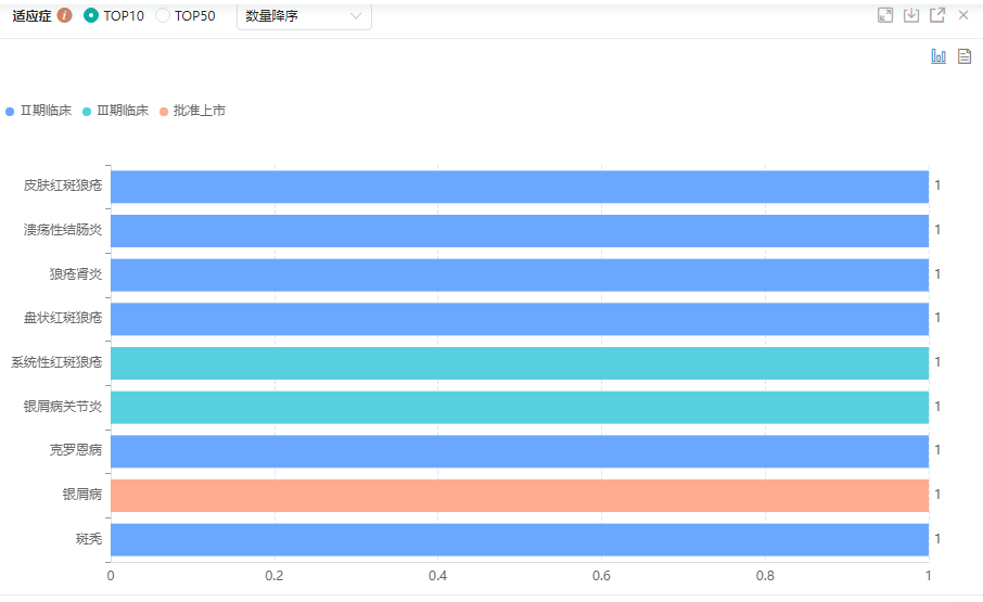 JAK抑制剂TOP10适应研发热度/成熟度分析