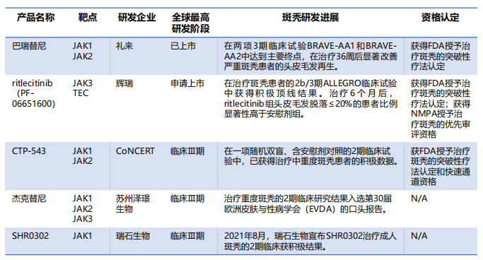 全球JAK抑制剂—斑秃研发进展(部分)
