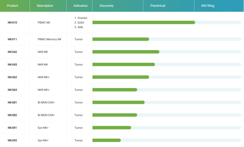恩凯赛药目前拥有10个在研管线,专注于NK细胞疗法研究与开发。
