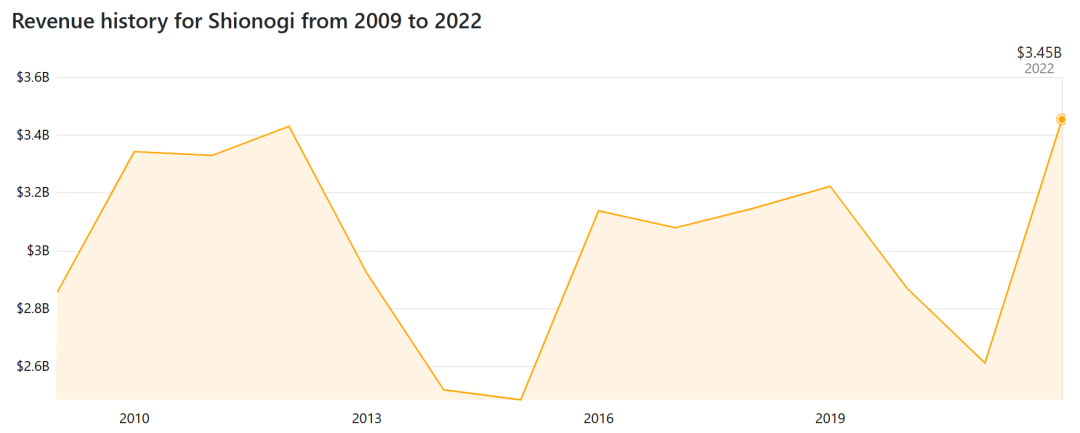 以下是盐野义制药2009年~2022年营收额变化情况: