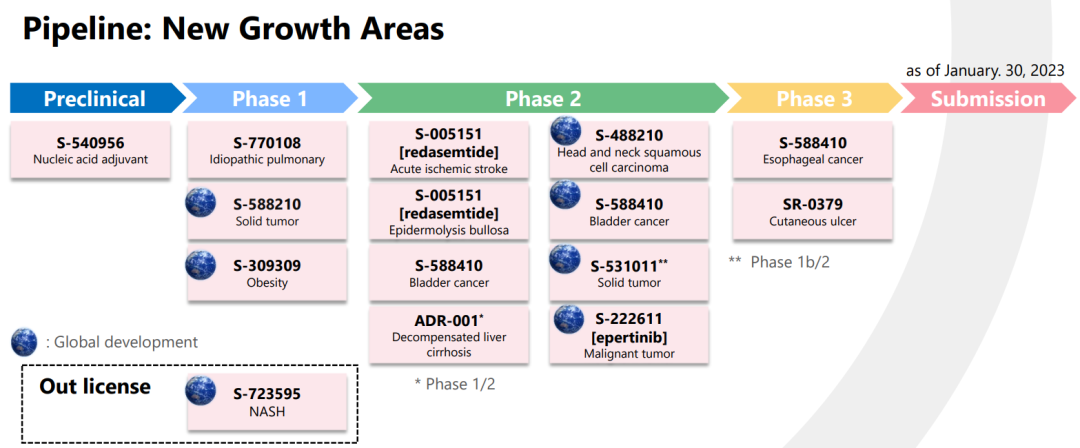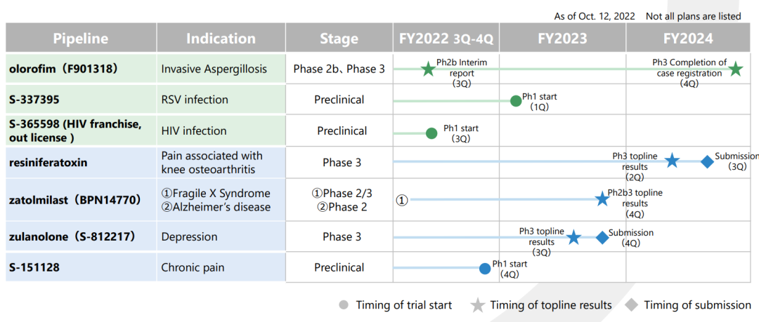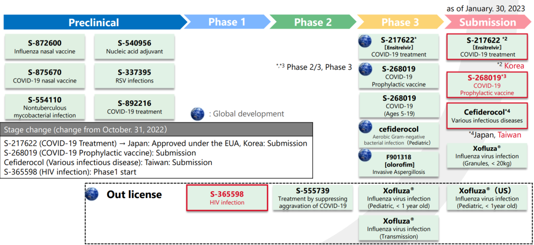(以下研发管线源自盐野义公司官网,日期截至2023年1月30日)