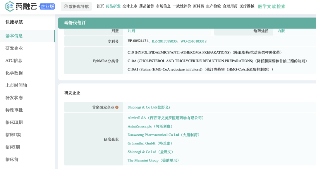 截图来源:药融云全球药物研发数据库