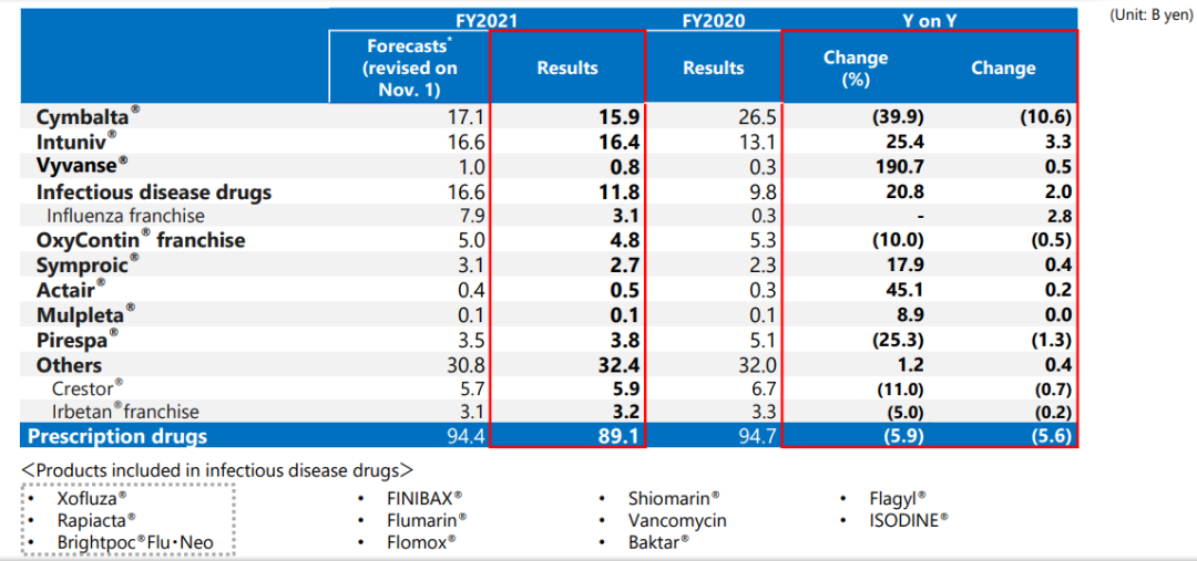 日本国内市场处方药营收情况: