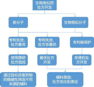 生物类似药处方开发需选择以及生产优质分子,即使处方不同,也要保证理化性质和生物活性特征与原研药高度相似。生物类似药处方开发取决于多种因素,例如专利、现有处方的改进空间、公司平台知识等。