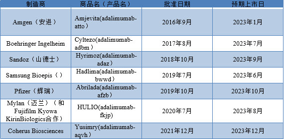 Humira®首个上市处方为:甘露醇、氯化钠、PS 80、柠檬酸盐、磷酸盐缓冲液和50 mg/mL阿达木单抗。最新处方为:甘露醇、PS 80、磷酸盐缓冲液和100 mg/mL阿达木单抗。目前批准的生物类似药均是以50mg/m LHumira®为参考处方进行开发的。
