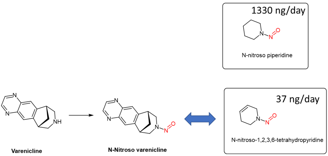图3. N-nitroso varenicline与N-nitroso piperidine化学结构对比