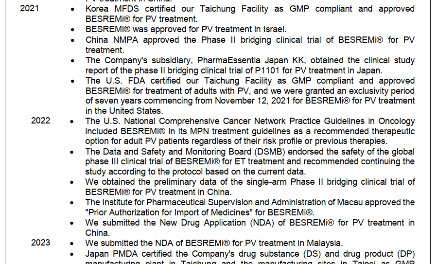 2023年3月,本品在日本获准上市。2023年最新数据显示,Besremi(ropeginterferon alfa-2b)获意大利主管机关核准纳入医保,药价达7550欧元,超过本品在美国500 mcg一针约7507美元的药价。