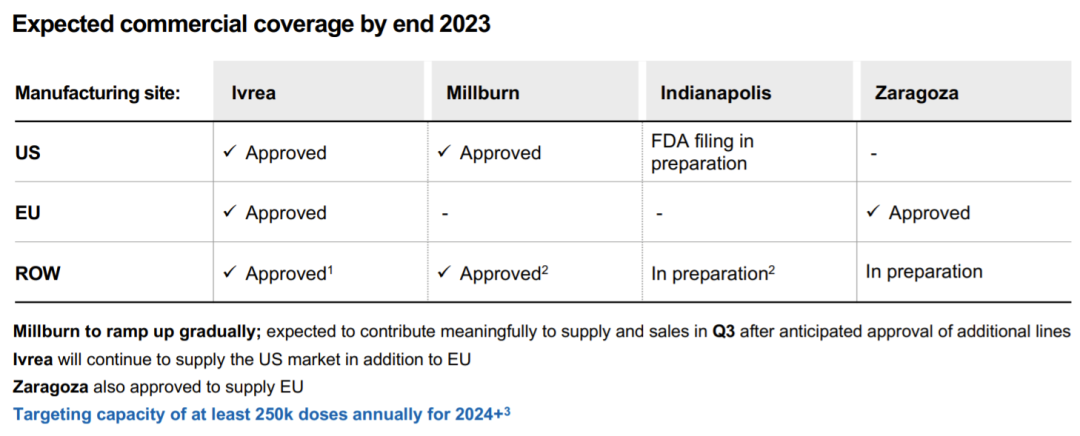 西班牙萨拉戈萨的工厂已获准向欧盟市场供应该药物。为了应对潜在激增的需求(预计销售峰值将超过20亿美元),诺华还准备向FDA寻求批准其位于印第安纳州印第安纳波利斯一家新工厂生产Pluvicto。
