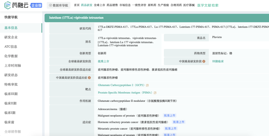 Pluvicto药物研发信息(部分,完整内容请登录“药融云数据库www.pharnexcloud.com/?mh”查看)