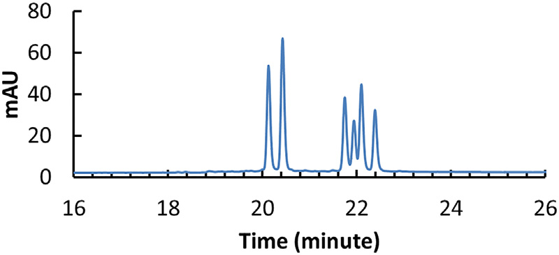 ▲实验条件优化后得到基线分离的6个立体异构体