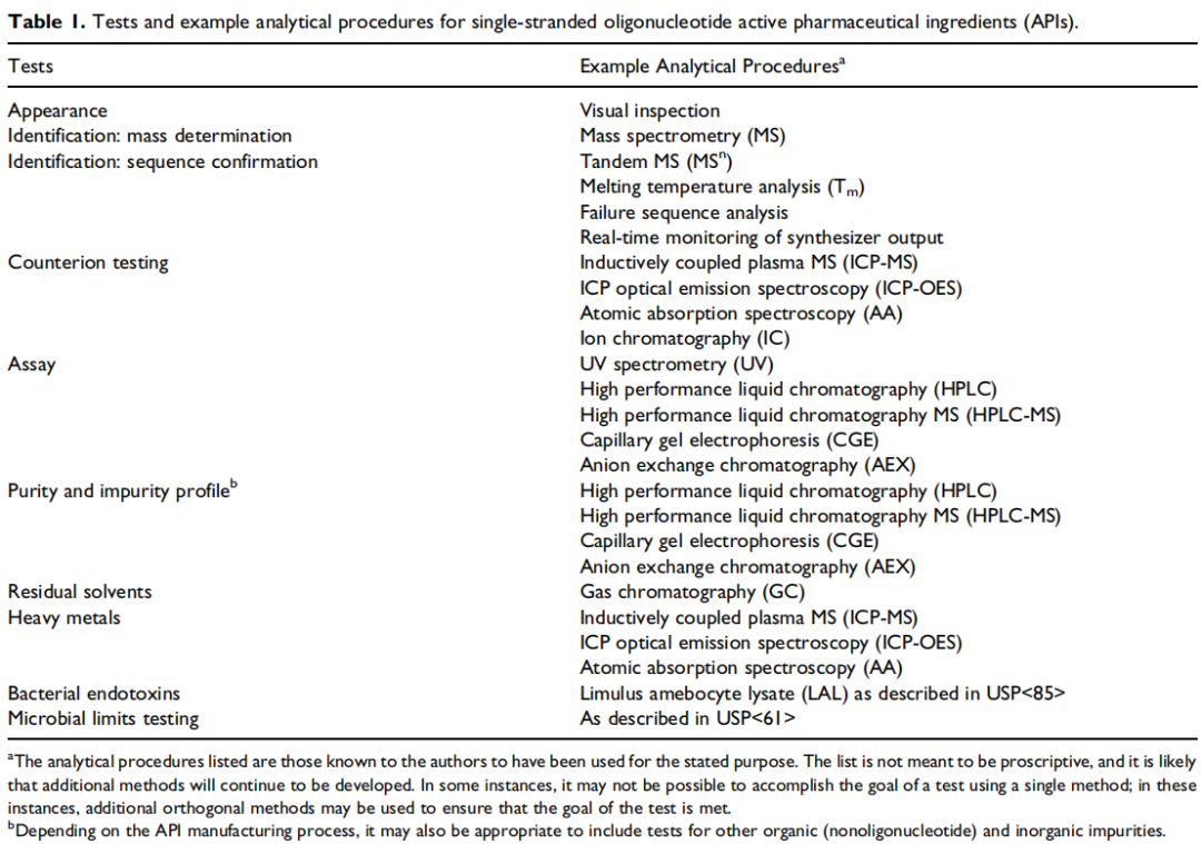 ▲单链寡核苷酸活性药物成分(API)的检测项目和分析方法示例