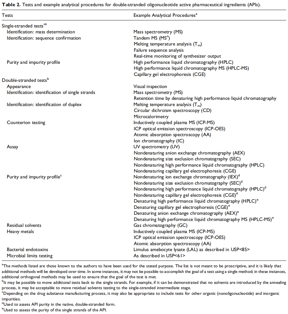 ▲双链寡核苷酸活性药物成分(API)的检测项目和分析方法示例