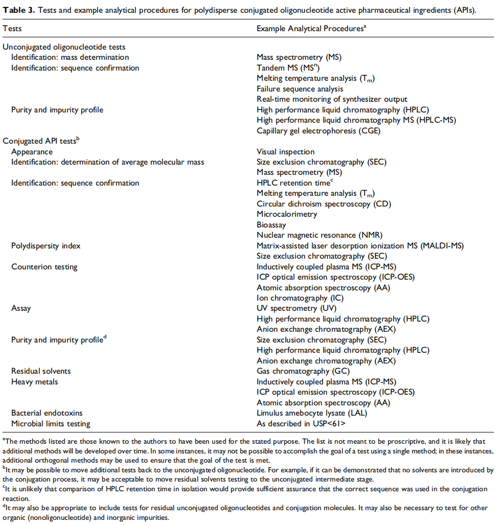 ▲偶联后的寡核苷酸活性药物成分(API)的检测项目和分析方法示例