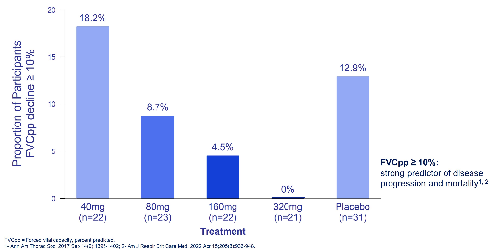 - IPF患者Integris-IPF 2A期试验320 mg剂量组的24周数据预计将于2023年第二季度公布;