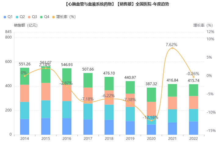 随着人口老龄化的加剧,心脑血管疾病已成为老年人常见疾病之一,尽管近年来心血管中成药的总体院内市场有所下降,但相关用药市场需求依然可观。