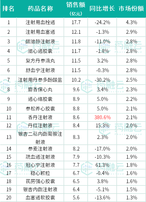 心脑血管中成药TOP20