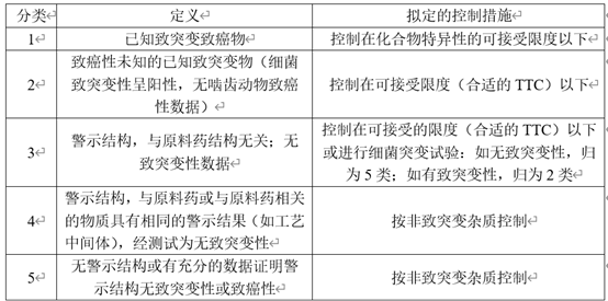 表3 根据致突变潜力和致癌潜力对杂质进行分类及控制措施