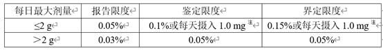 表1 原料药杂质限度