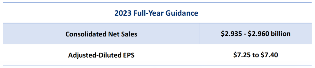 药融云数据显示:公司正在更新2023年全年净销售额财务指引,从之前的29.35~29.60亿美元调整至29.65~29.90亿美元。其中,预计有机销售增长保持在3%~4%;新冠疫苗相关的销售额约为6000万美元,此前的指引为8500万美元;基于目前外汇汇率,预计2023年的全年收益会产生1500万美元的调增,而此前的指引为3000万美元的调减。公司正在更新调整后摊薄每股收益的2023年全年财务指引,预计全年调整后稀释每股收益将在7.50~7.65美元,而之前的区间为7.25~7.40美元。2023年全年资本支出预计不变,仍为3.5亿美元,包括用于现有高价值产品产能扩张的增长性资本支出。公司还宣布,其董事会已批准2023年第三季度每股0.19美元的股息。
