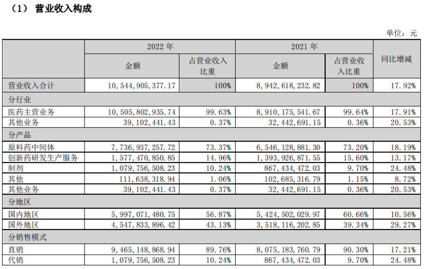 2022年公司实现营业收入572,092.47万元,比去年同期增长26.98%;实现归属于母公司的净利润92,090.42万元,比去年同期增长30.43%。医药原料药、关键医药中间体、动保原料药合计营收53.17亿元。