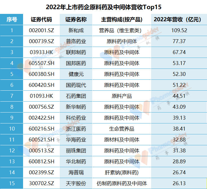 《2021年原料药市场国内药企营收top15!新和成夺得榜首》