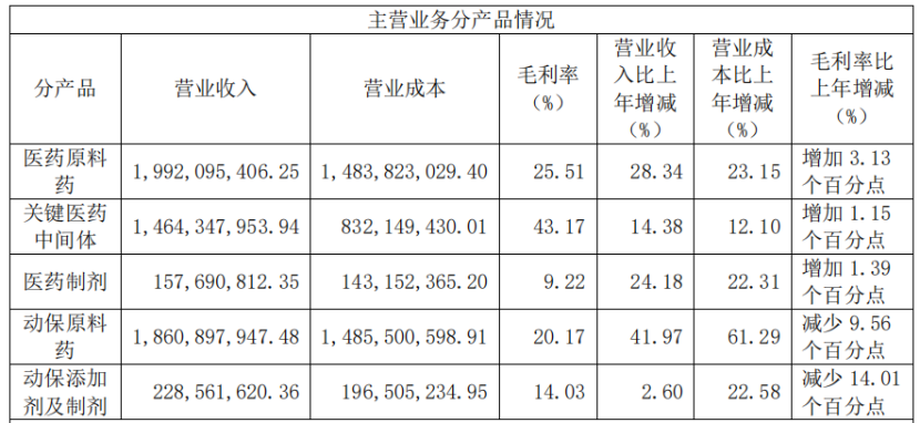 旗下川宁生物及其子公司实现营业收入38.21亿元,同比增长18.21%,净利润4.12亿元, 同比增长 269.58%;其中医药中间体营收35.31亿元,同比增长16%。