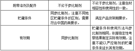 附带溶剂和配件(若有),不低于参比制剂标准,注意其相容性及使用性。