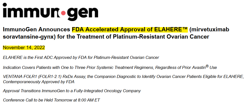 https://investor.immunogen.com/news-releases/news-release-details/ImmunoGen-reports-recent-progress-and-2022-financial-results https://mp.weixin.qq.com/s/to6BlRaB5y0UTk1LiVIlKA;