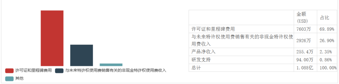 从公司的财务状况看来,技术授权许可费仍是ImmunoGen目前主要的收入来源。根据公司2023年3月1日发布的2022年财报,2022年公司总营收1.09亿美元,同比增加55.72%,主要来自于华东医药、Viridian公司授权合作的一笔里程碑付款,以及与礼来和Magenta授权合作的一次性许可费用。