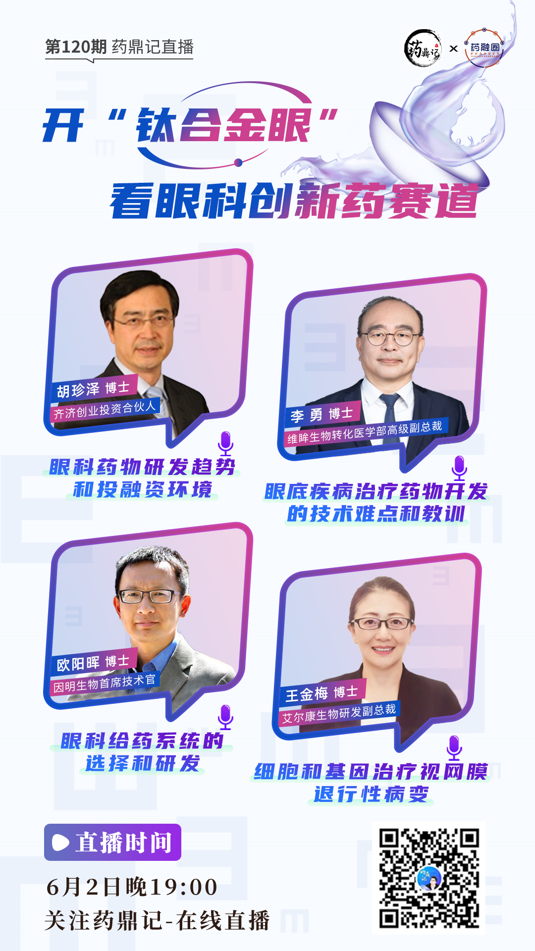 鉴于此,6月2日19点,药鼎记邀请了4位嘉宾为大家带来“药科创新药”相关干货分享,欢迎大家收看!