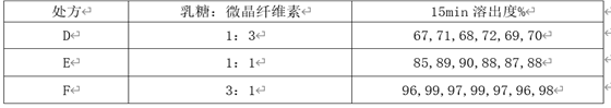 注:处方中填充剂为乳糖和微晶纤维素,D、E、F处方中填充剂总和不变。