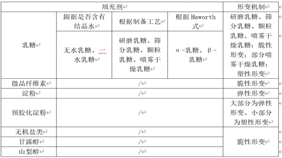 表1:口服固体制剂中常见填充剂