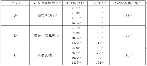 表2:不同型号乳糖在处方开发中的筛选(压片工序)