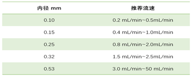 第七步:载气流速选择,载气流速的选择相对容易,可按最佳流速来设置,不同的内径色谱柱对应不同的最佳载气流速范围,见下表: