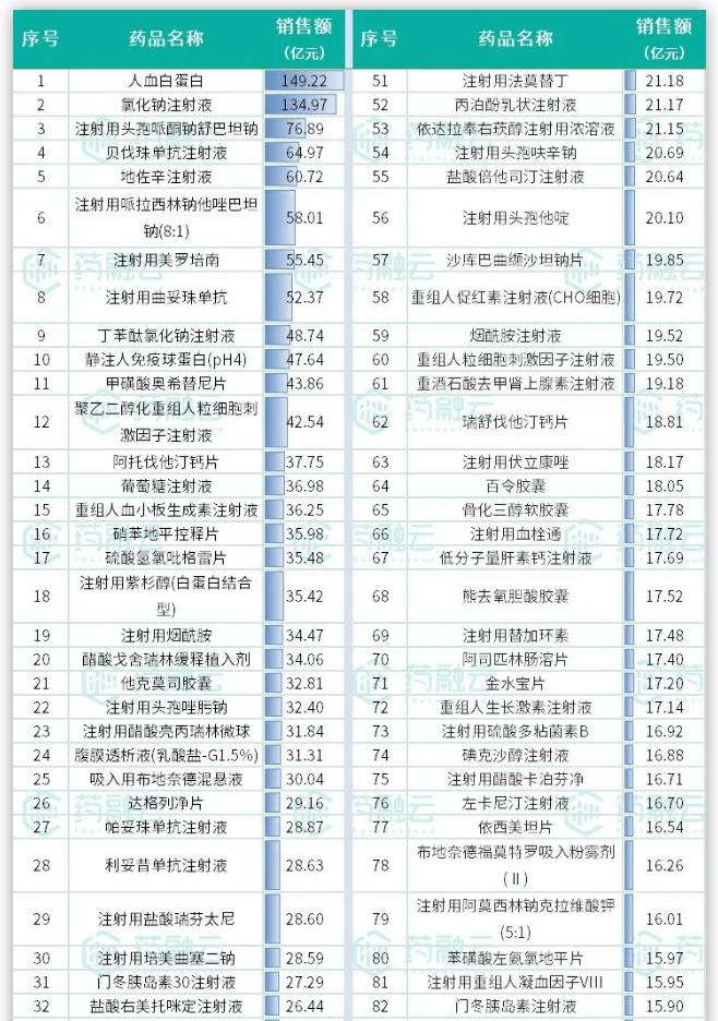2022年全国药品销售额TOP100药品(院内)