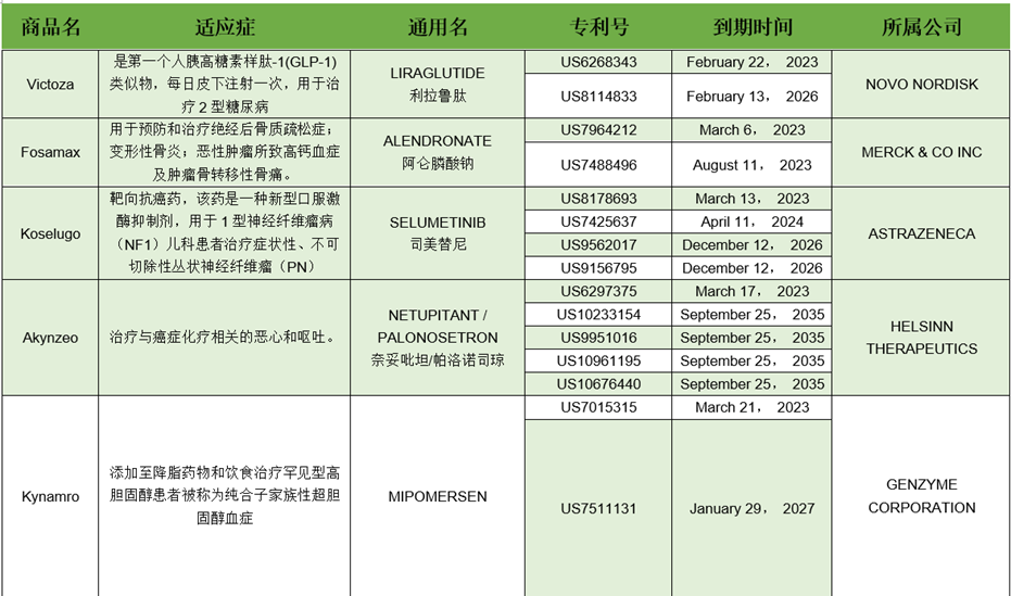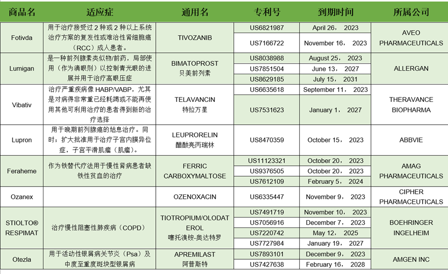 以下是我整理的2023年即将专利到期的药物汇总,之后还会总结2024-2025年专利到期药物。