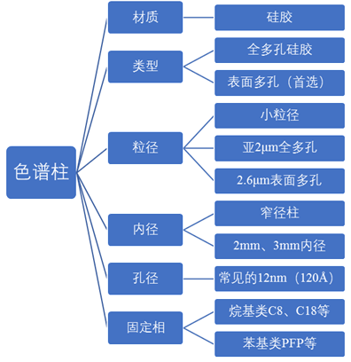 烷基键合相,特别是C18是目前最常用的固定相类型,同样用于多肽药物的分析,但各种类型的苯基柱可提供不同的选择性,特别是对含有酪氨酸等芳香结构残基的多肽。另外一些表面修饰,封端/不封端,嵌合基团的色谱柱也可提供不同的选择性。