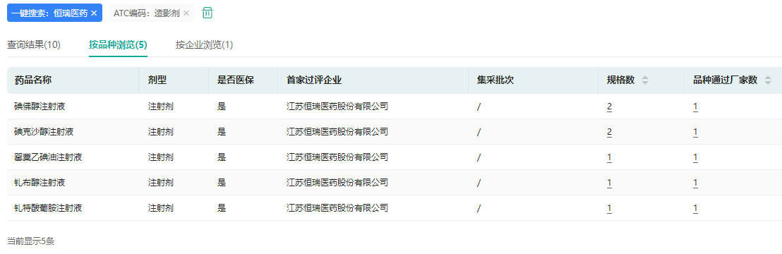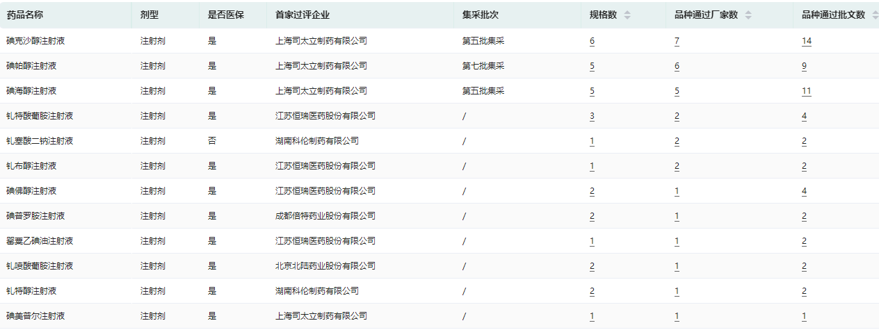 造影剂已过评品种信息查询