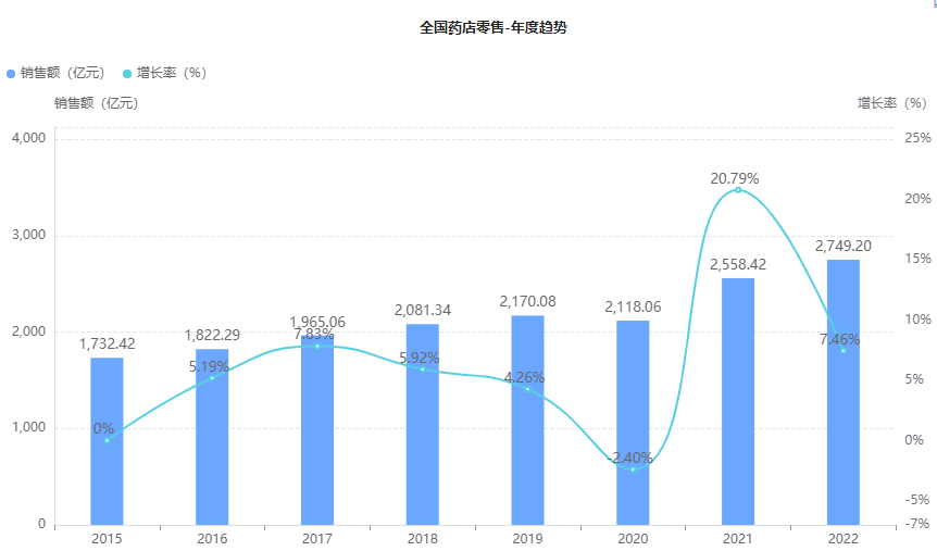 1. 实体零售药店药品销售额稳步增长,市场规模超2749亿!