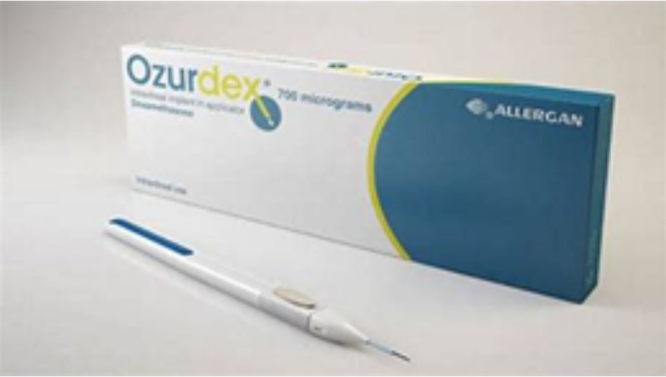 2 Ozurdex®是一种无菌玻璃体内植入物,在NOVADUR®固体聚合物缓释给药系统中含有0.7 mg (700 mcg)地塞米松,不含抗菌防腐剂。NOVADUR®系统含有两种聚D, l -丙交酯-羟基乙酸酯(PLGA)聚合物辅料。这两种聚合物材料都具有相同的PLGA主链,但它们之间的末端基团不同。一种聚合物Resomer RG 502是酯端,另一种Resomer®RG 502h是酸端。Ozurdex®预加载到一次性使用的DDS®涂抹器中,以便将棒状植入物直接注射到玻璃体中。Ozurdex在玻璃体腔内抑制黄斑水肿的作用可以维持3-6个月。